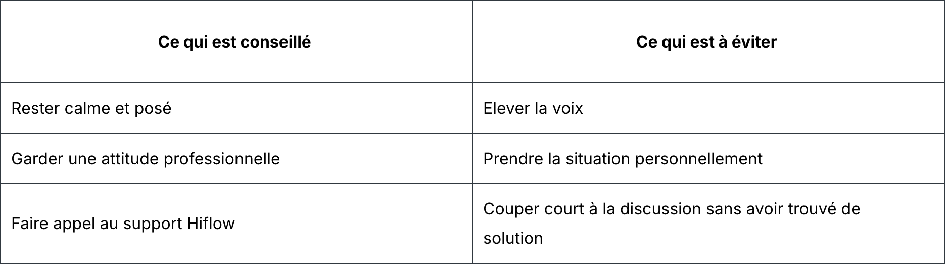 - Une communication claire et prévenante, tant avec les clients finaux qu’avec les équipes Hiflow, afin d’éviter tout malentendu.